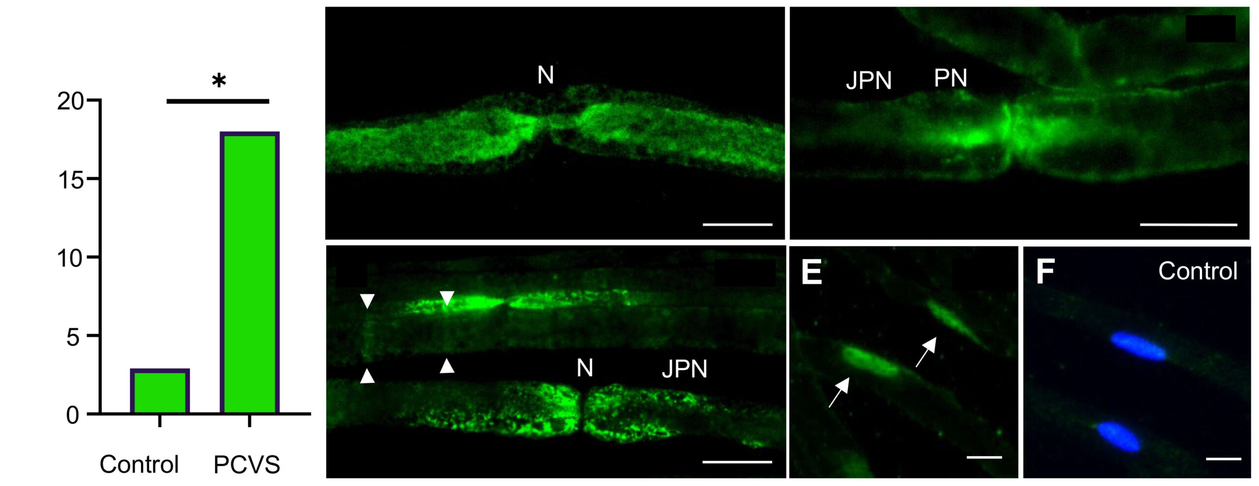The paper states: “Compared with controls, PCVS patients had a significantly greater frequency of autoantibodies against peripheral nervous system structure”.