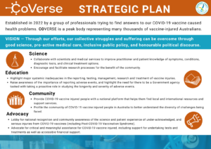 Established in 2022 by a group of professionals trying to find answers to our COVID-19 vaccine caused health problems. COVERSE is a peak body representing many thousands of vaccine-injured Australians.